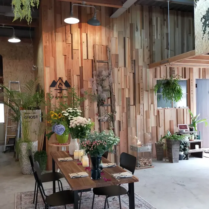 たくさんの花とグリーンに囲まれた空間で